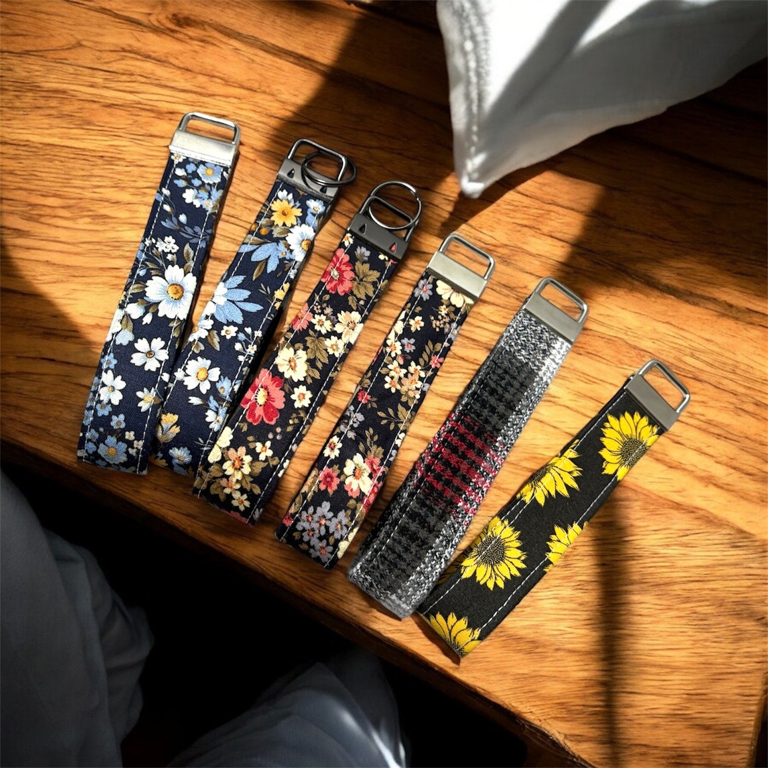 Cozy Cabin Sunflower Key Chain Wristlet | Handmade Fabric Key Fob Wristlet