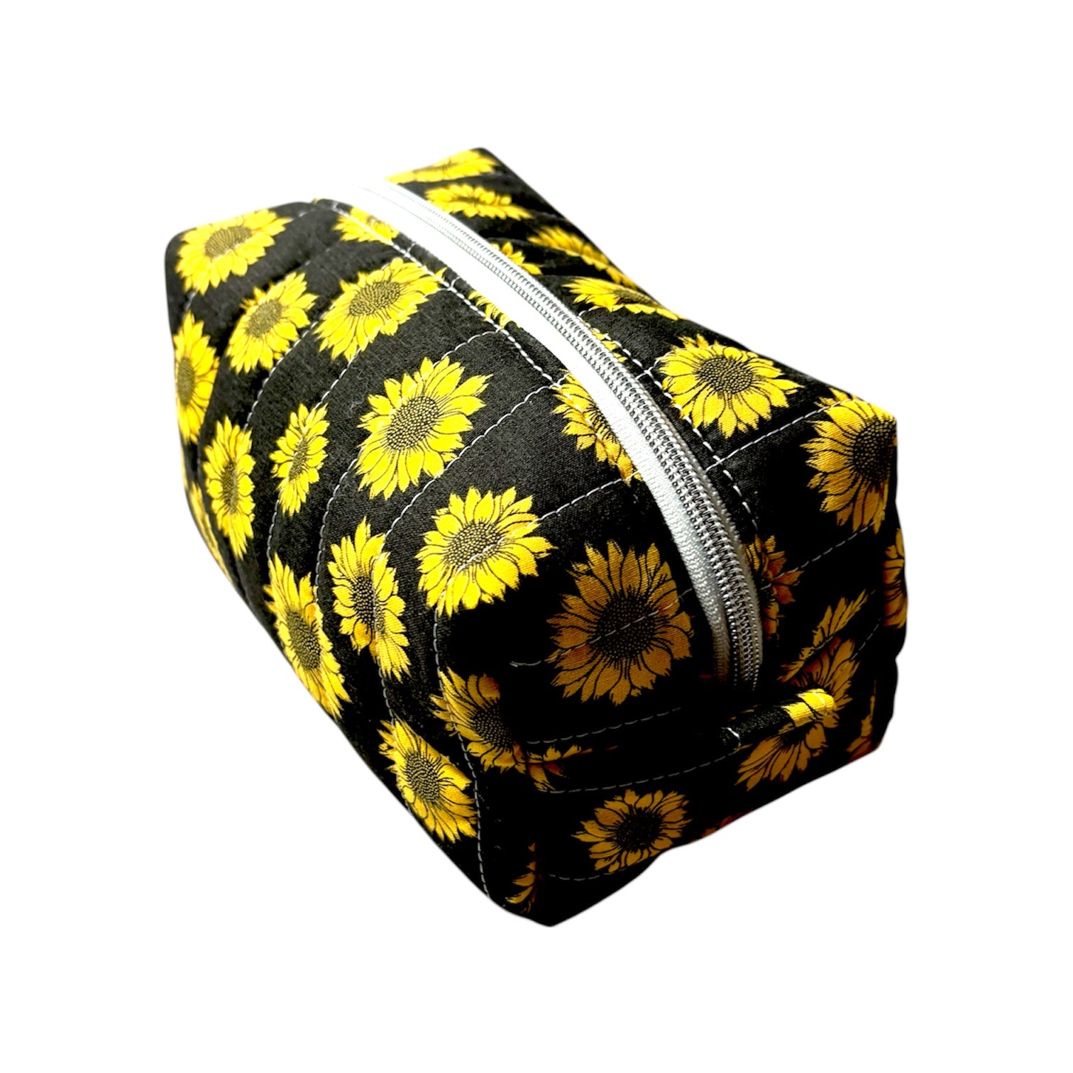 Cozy Cabin Sunflower Boxy Makeup Bag - Handmade Zipper Toiletry Bag