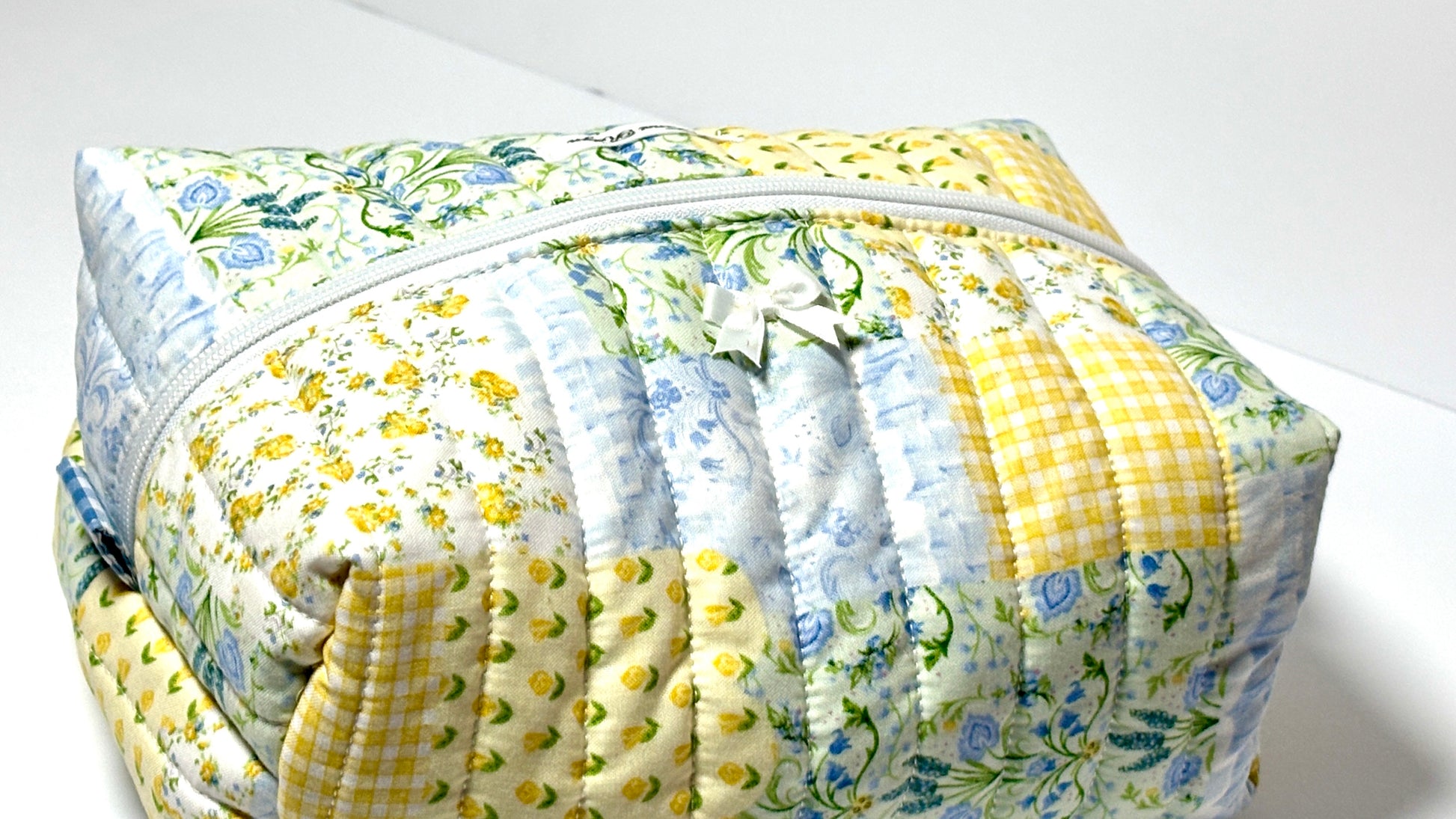 Make-Up/Boxy Bag - Quilted Yellow Blue Floral