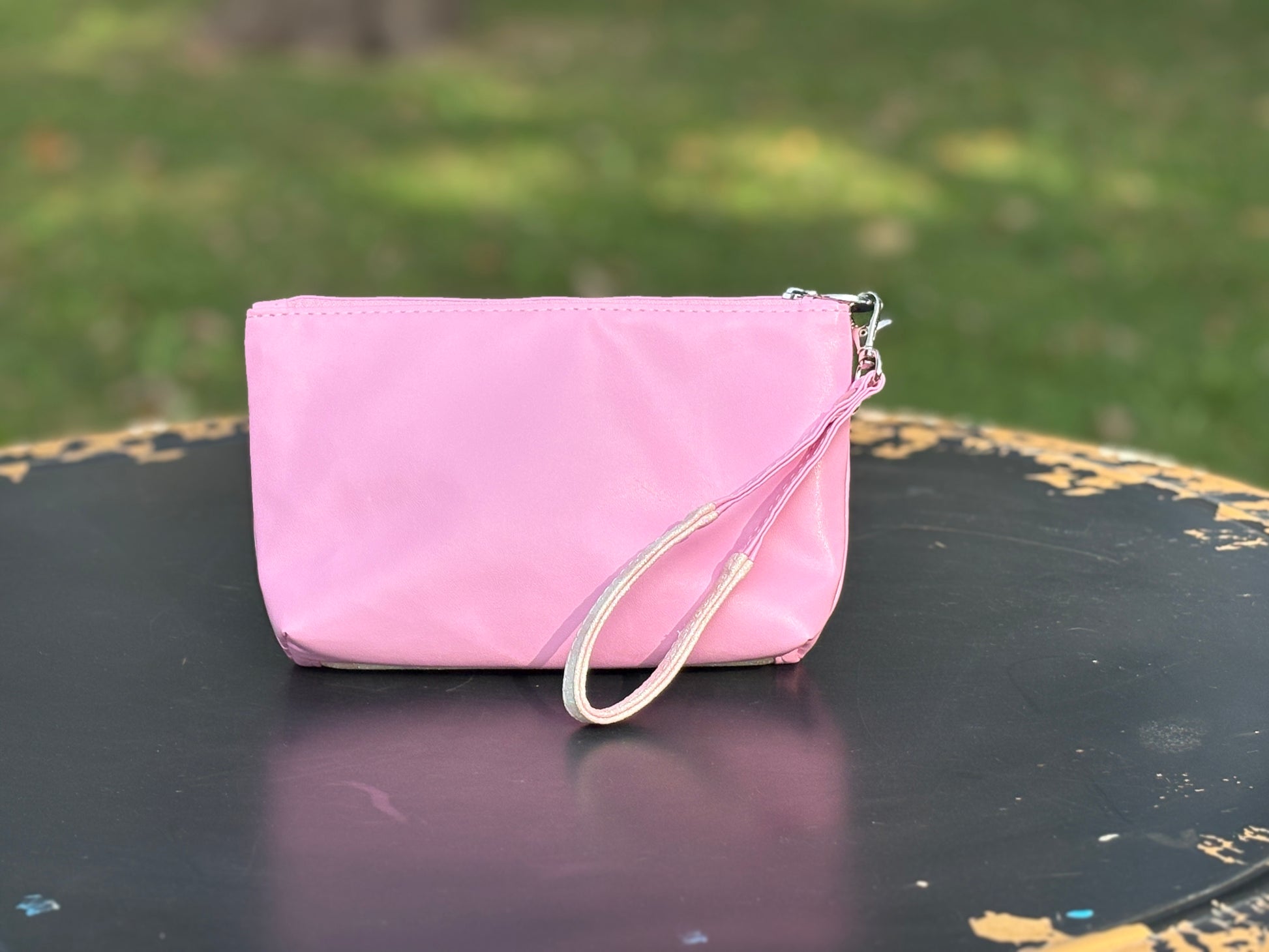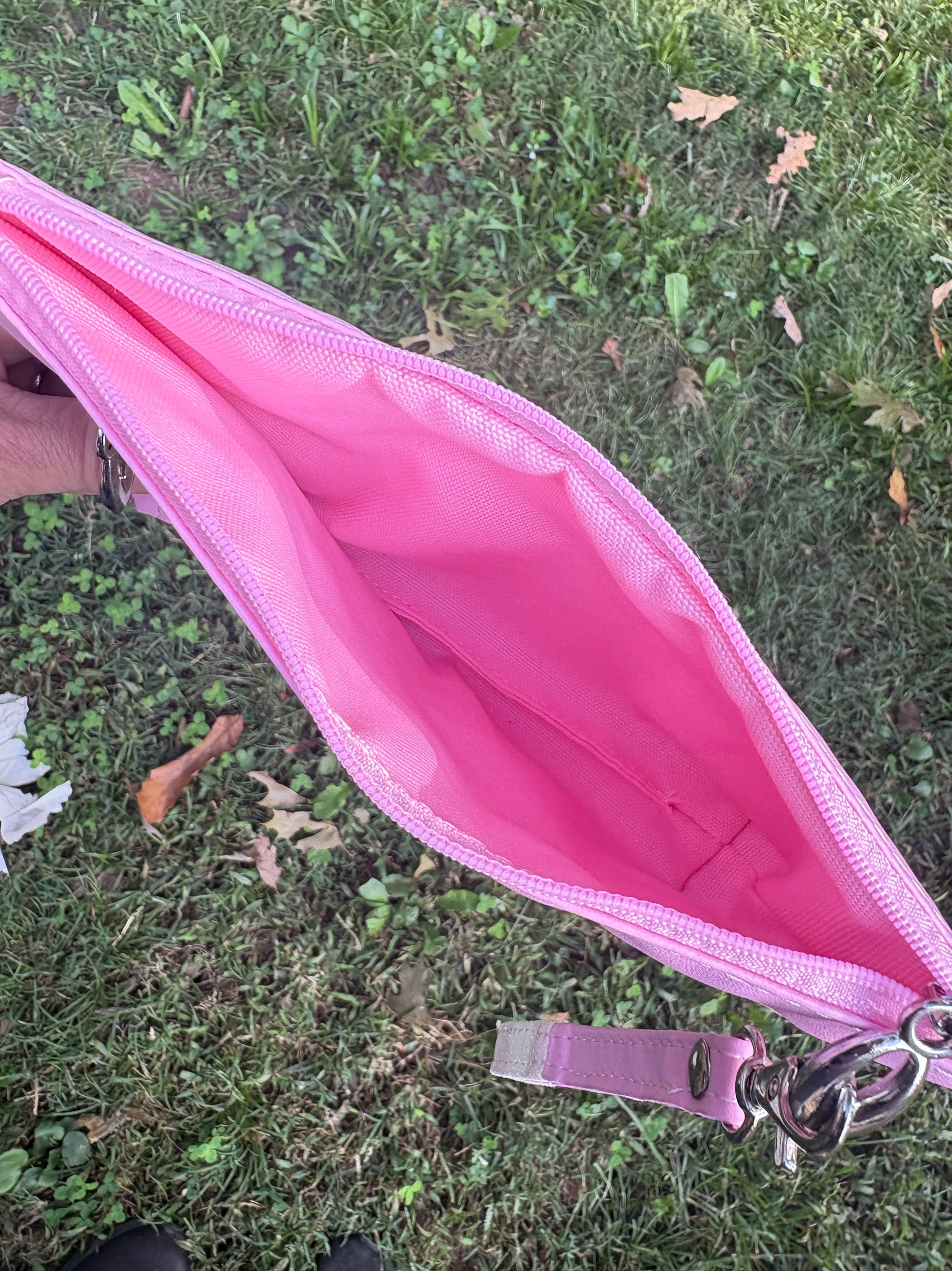 Wristlet Pouch Pink and White